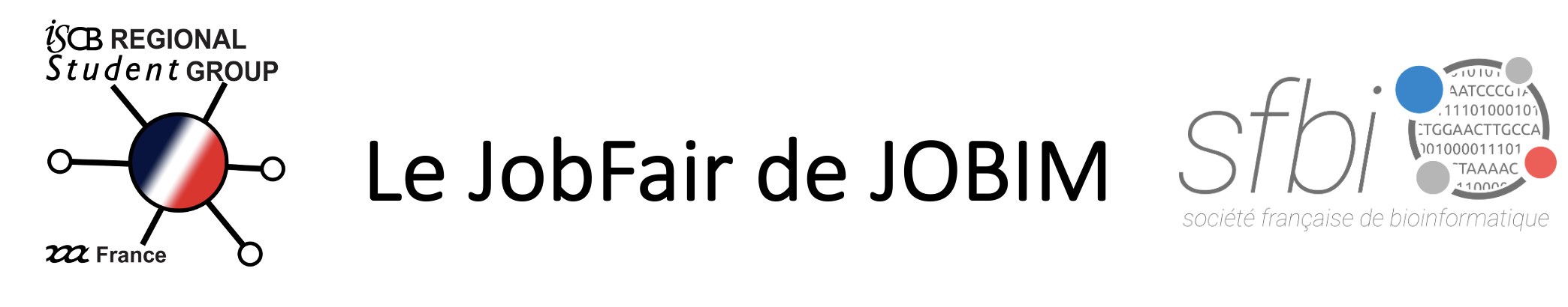 L'association des Jeunes Bioinformaticien·ne·s de France (JeBIF) travaille activement pour favoriser l'insertion professionnelle des jeunes membres de la communauté bioinformatique. Depuis l'année dernière, et avec le soutien de la SFBI et du comité local d'organisation de JOBIM, JeBIF organise le JobFair de JOBIM : un évènement annuel au cours duquel des jeunes bioinformaticien·ne·s peuvent rencontrer plusieurs professionel·le·s (dans une ambiance conviviale), afin d'identifier leurs besoins et les modalités de recrutement au sein de leurs structures.